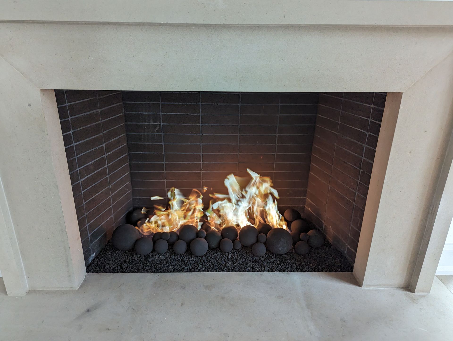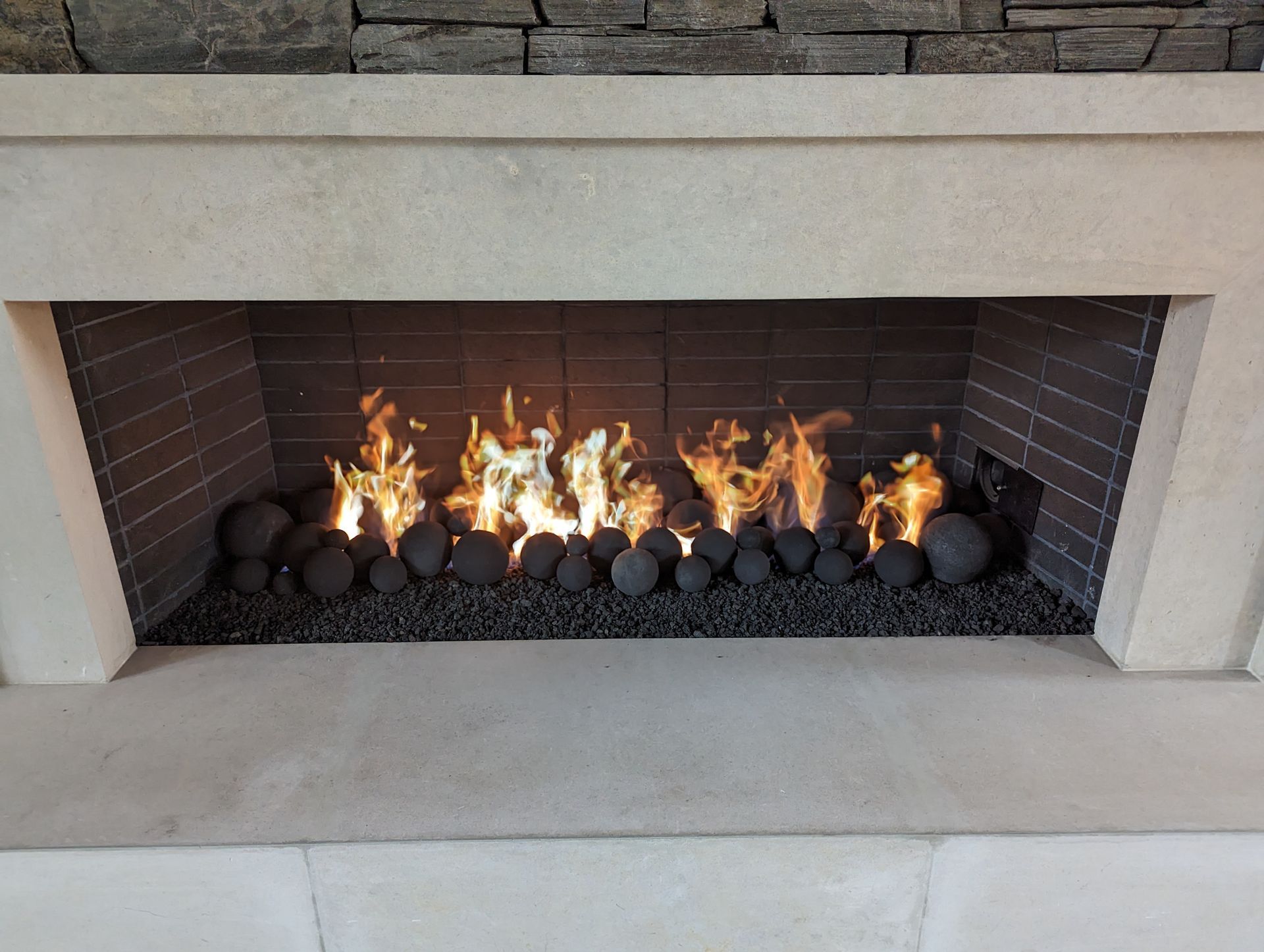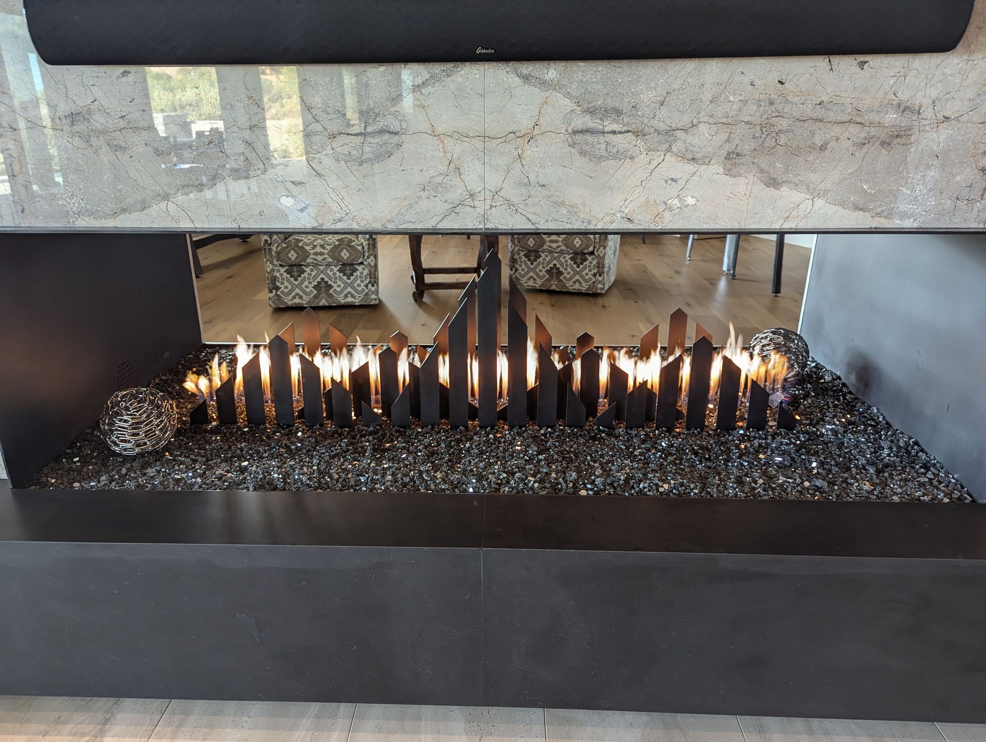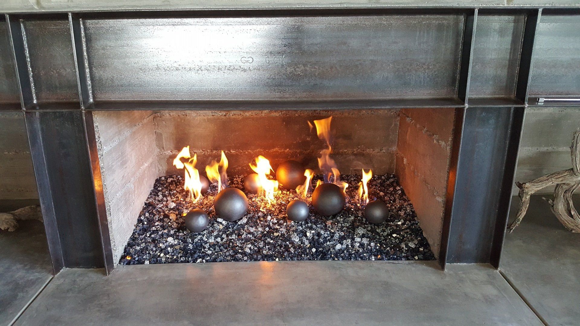 ButtonCustom designed to replace fireplace art that caused too much sooting in this Infinite Fireplace. Burner had low flames and delayed combustion. See-through fireplace was not drafting and combusted gas was spilling into the room causing a nauseating smell. This fire art was designed in such a way to correct the draft draw and increase flame height without changing anything to the burner or IPI system. This also helped in a quicker startup combustion within 3 seconds.