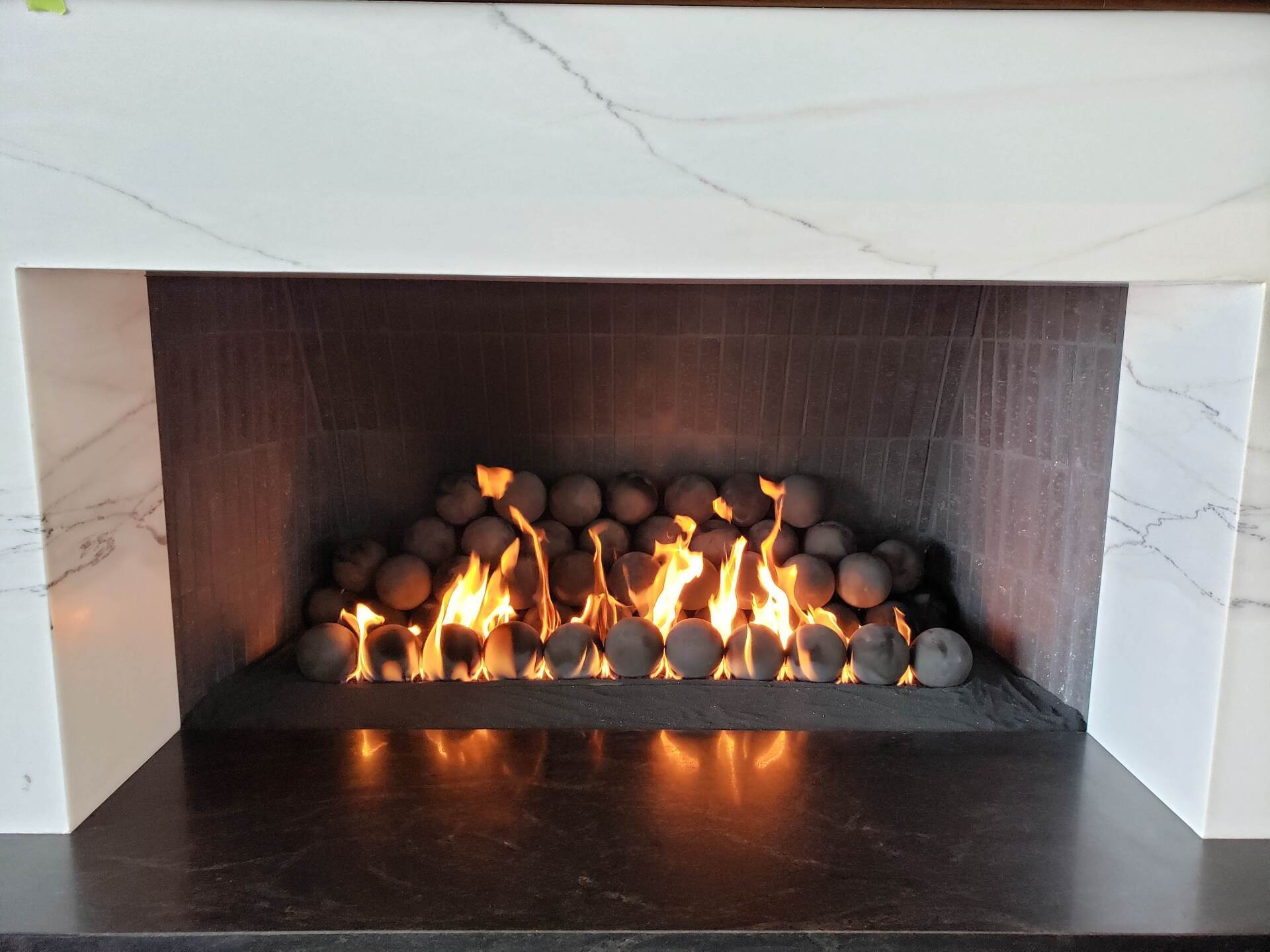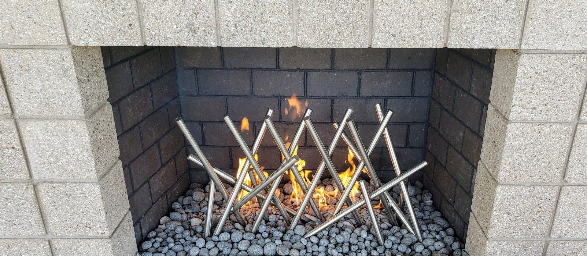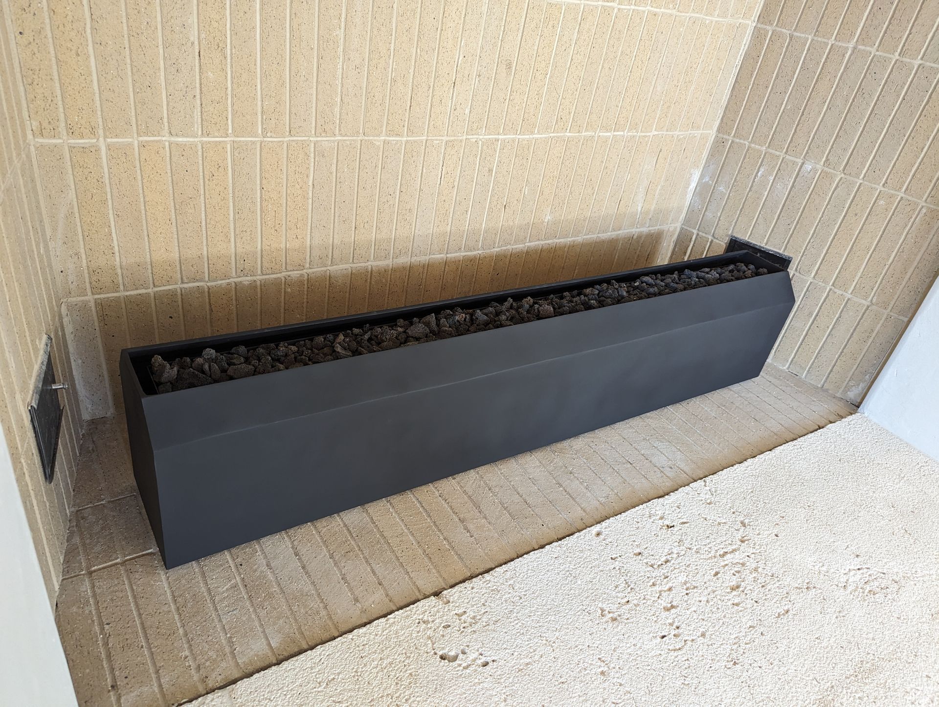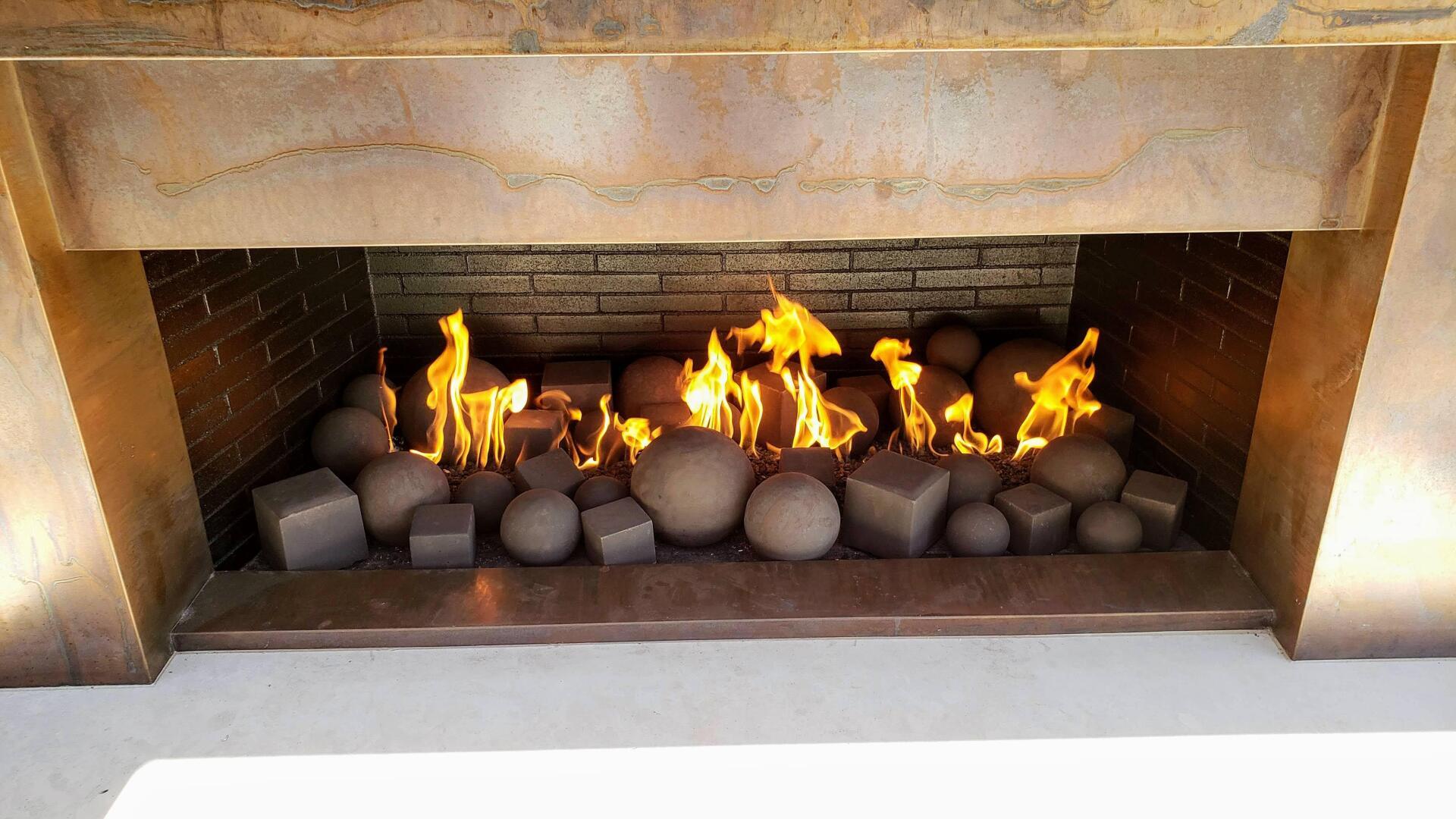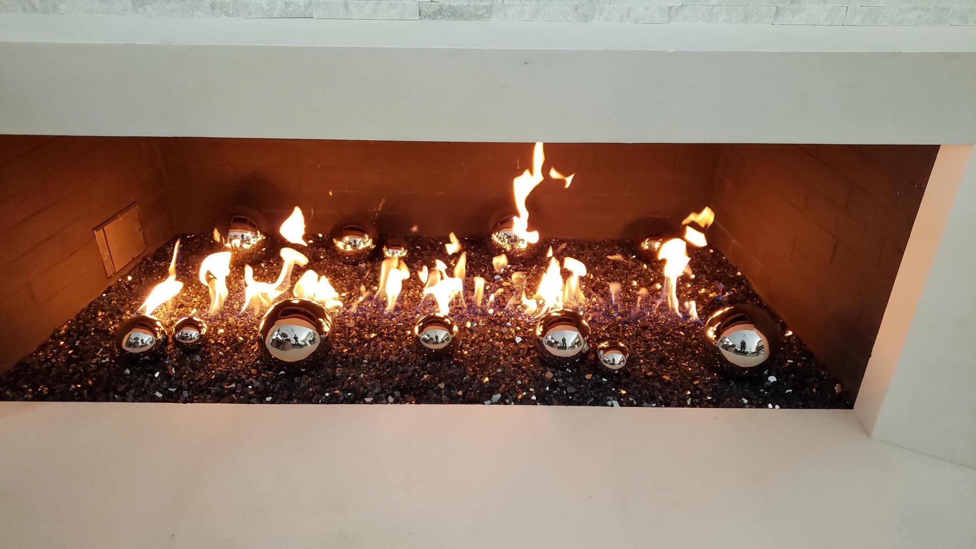 ButtonCustom designed to replace fireplace art that caused too much sooting in this Infinite Fireplace. Burner had low flames and delayed combustion. See-through fireplace was not drafting and combusted gas was spilling into the room causing a nauseating smell. This fire art was designed in such a way to correct the draft draw and increase flame height without changing anything to the burner or IPI system. This also helped in a quicker startup combustion within 3 seconds.