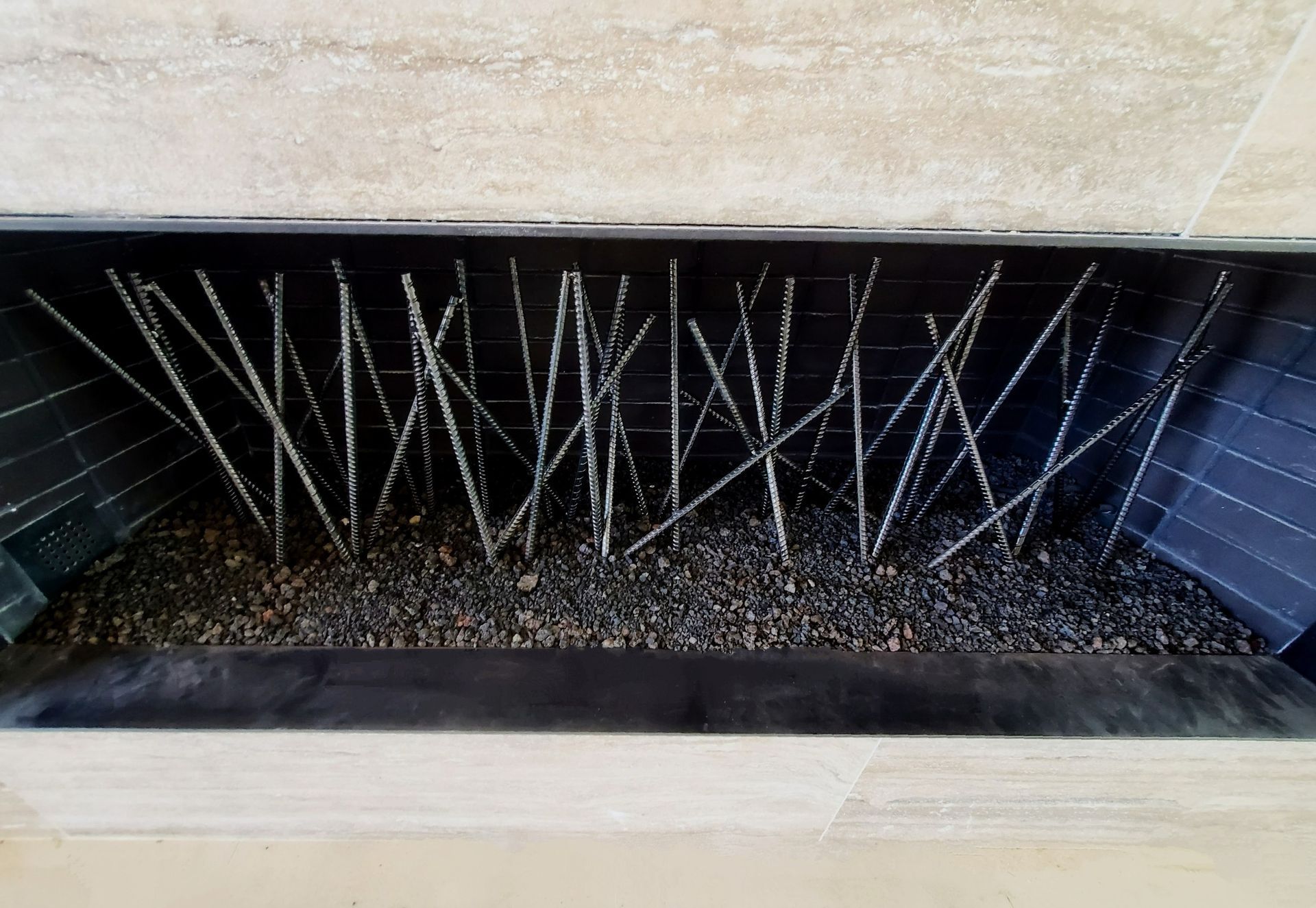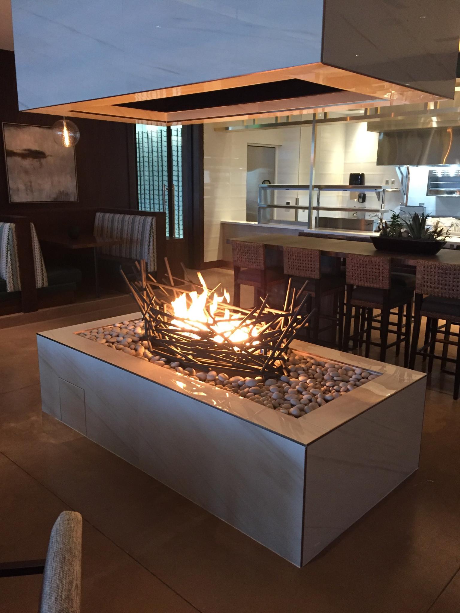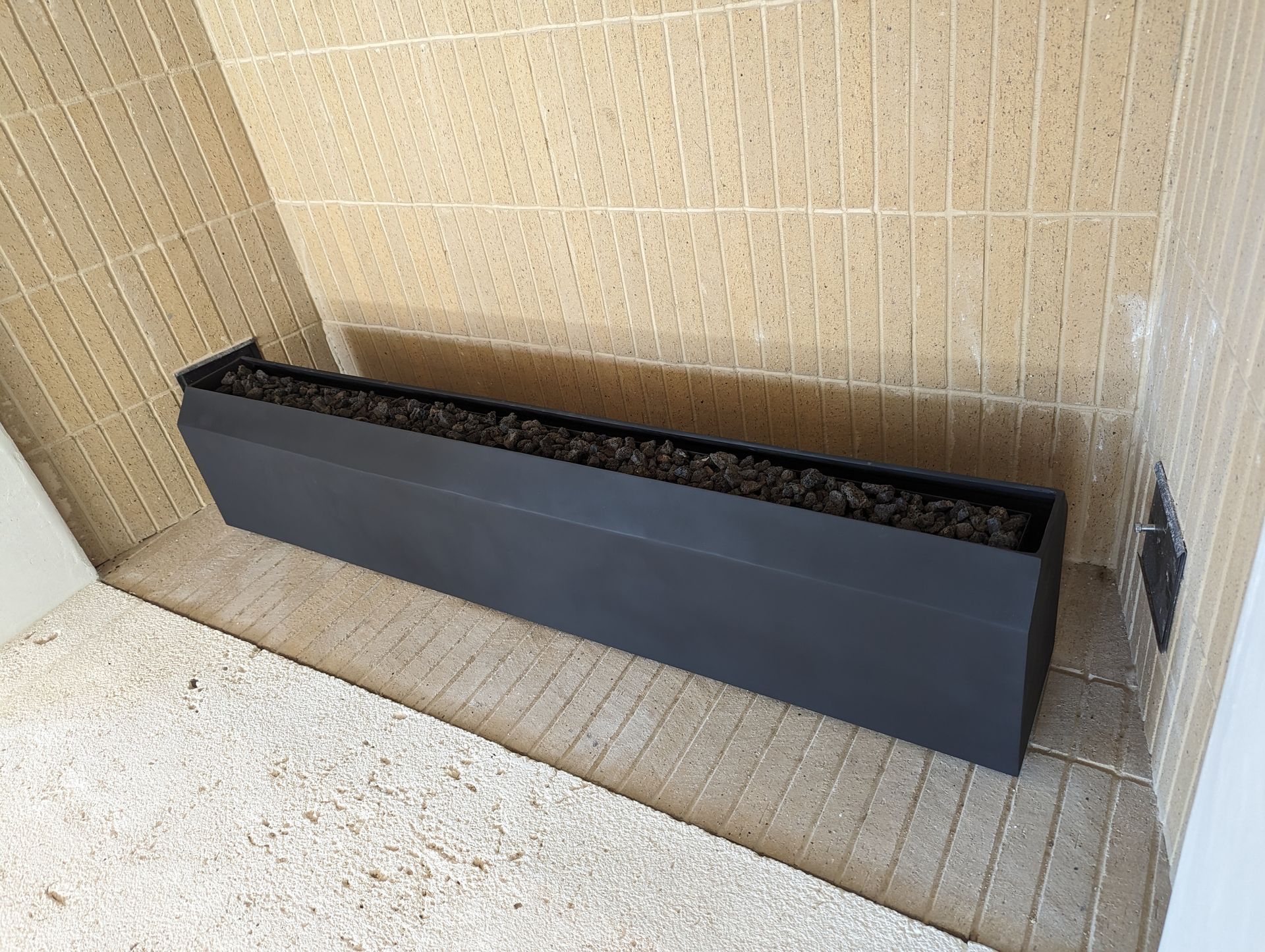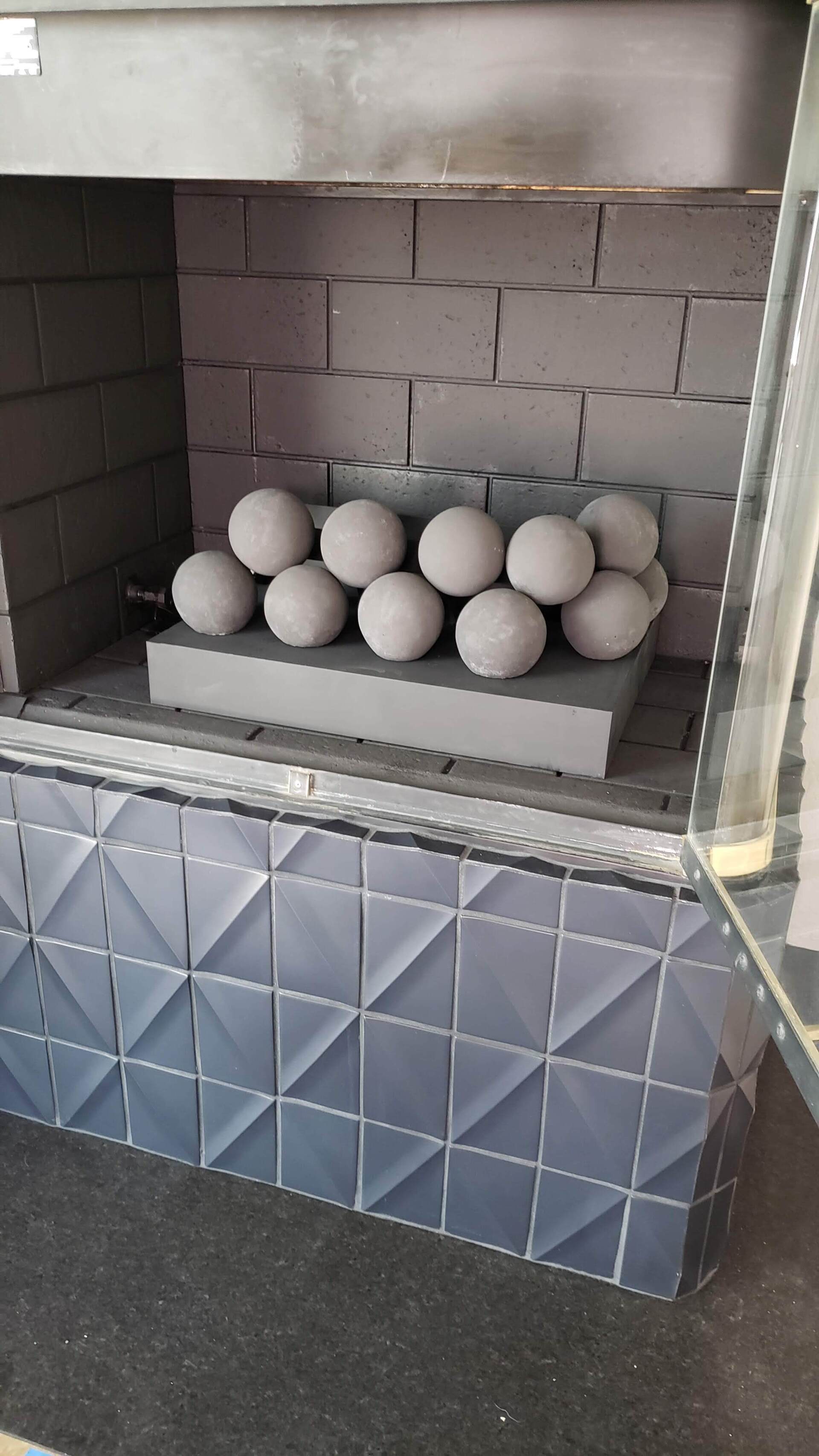 ButtonCustom designed to replace fireplace art that caused too much sooting in this Infinite Fireplace. Burner had low flames and delayed combustion. See-through fireplace was not drafting and combusted gas was spilling into the room causing a nauseating smell. This fire art was designed in such a way to correct the draft draw and increase flame height without changing anything to the burner or IPI system. This also helped in a quicker startup combustion within 3 seconds.