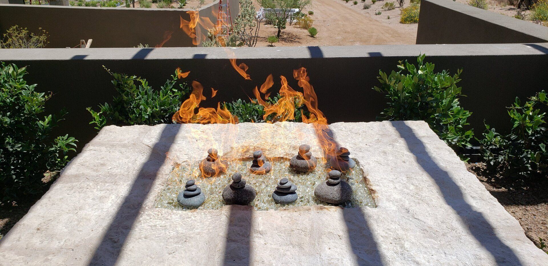 ButtonStacked stones at the "PQ" residence for the Master Zen patio fire pit.