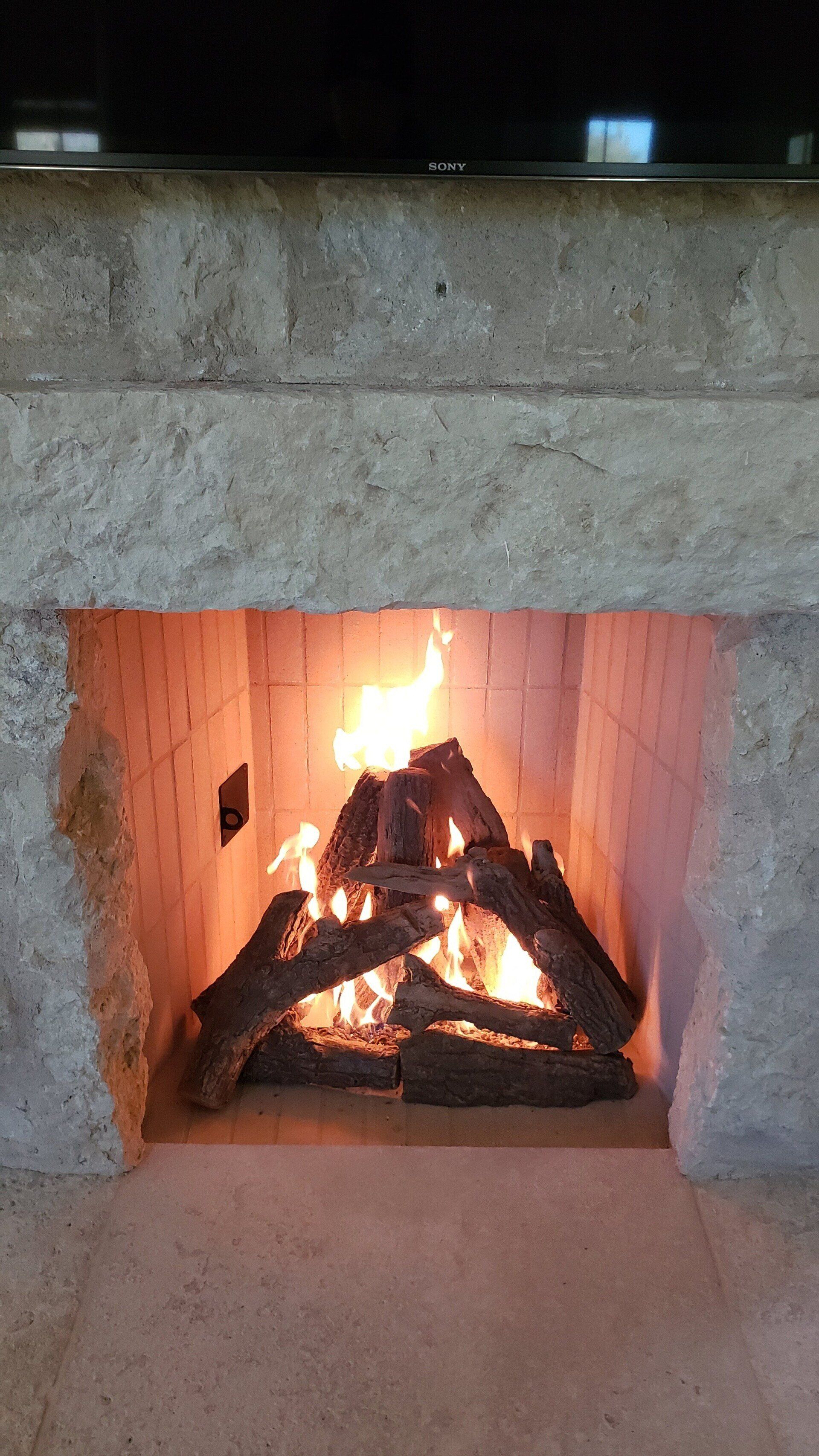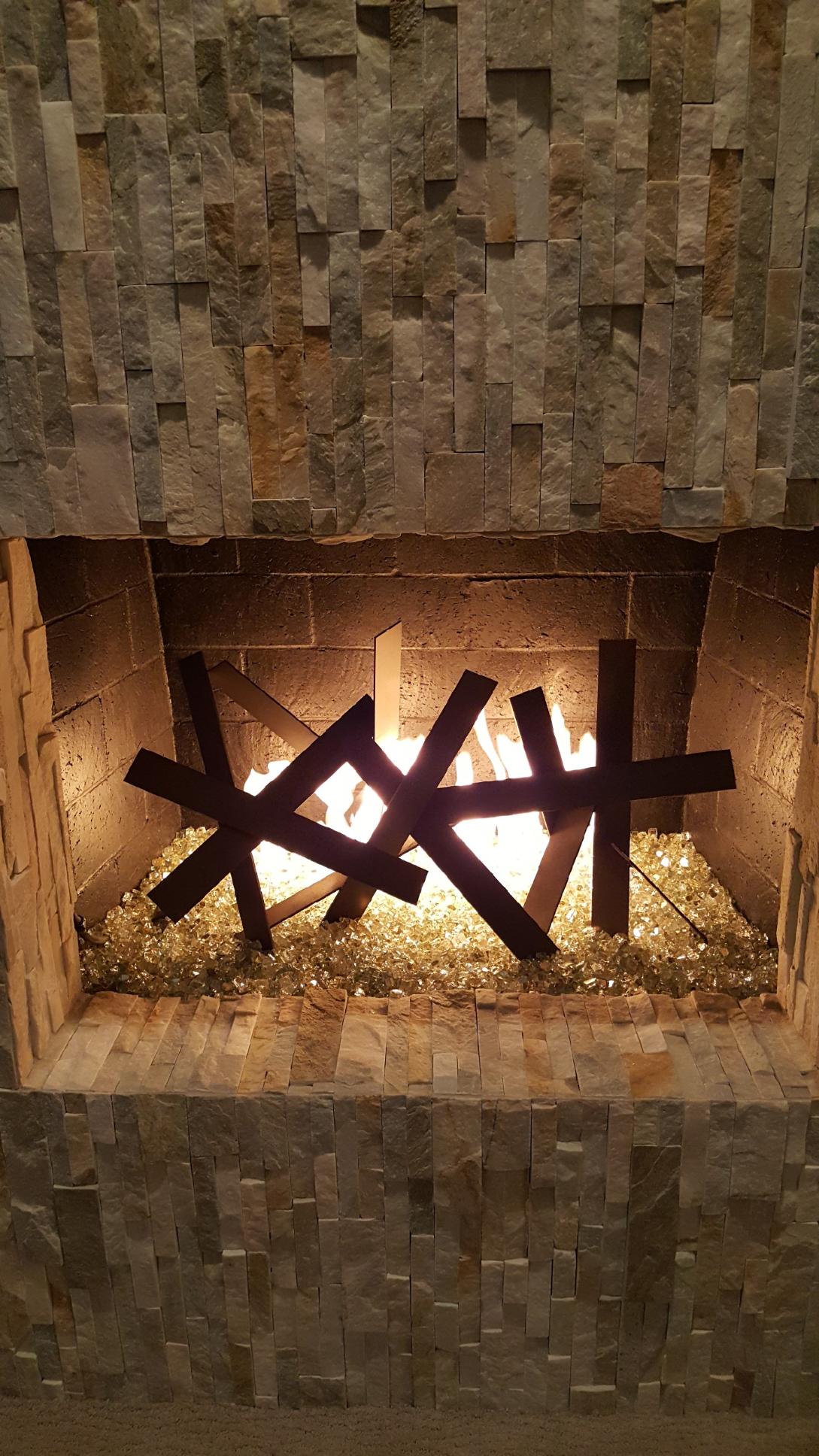 ButtonAdd some contemporary and modern flames to your fireplace by giving that clean no media look with flames! This is a picture of the work in progress.
