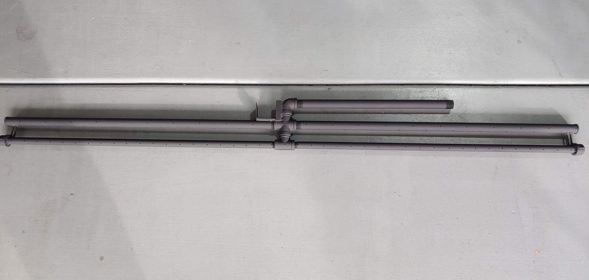 The custom made gas hub is a revolutionary design that increases gas flow and volume to each burner bar.
