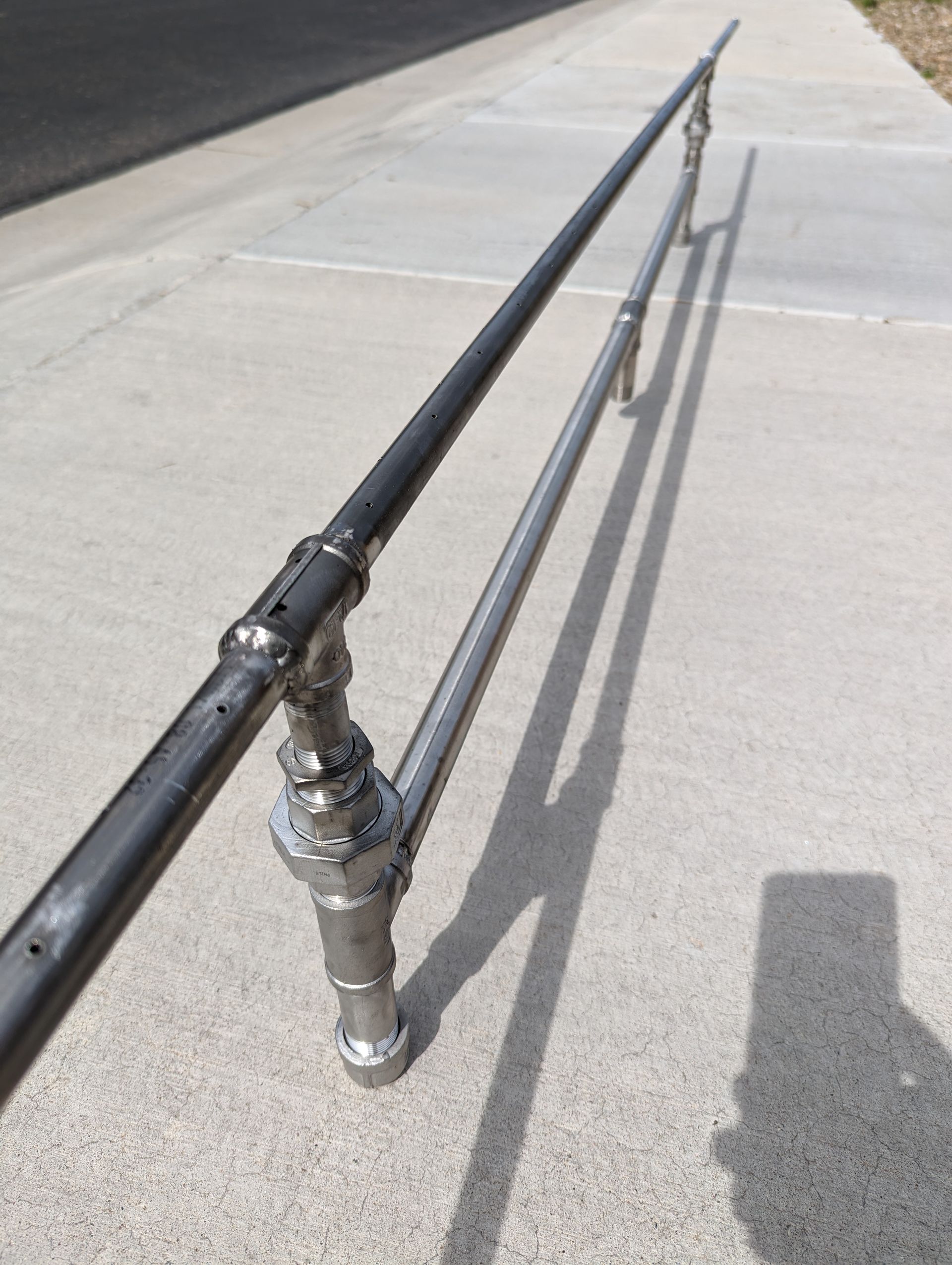 ButtonI custom made this burner with a custom made gas hub and called it the Octofire. Each burner jet has weep drainage and air mix. This prevents water from getting into the burner and giving some tall flames. On top of that, the end of each burner bar also has a weep hole with SS backer plate.
