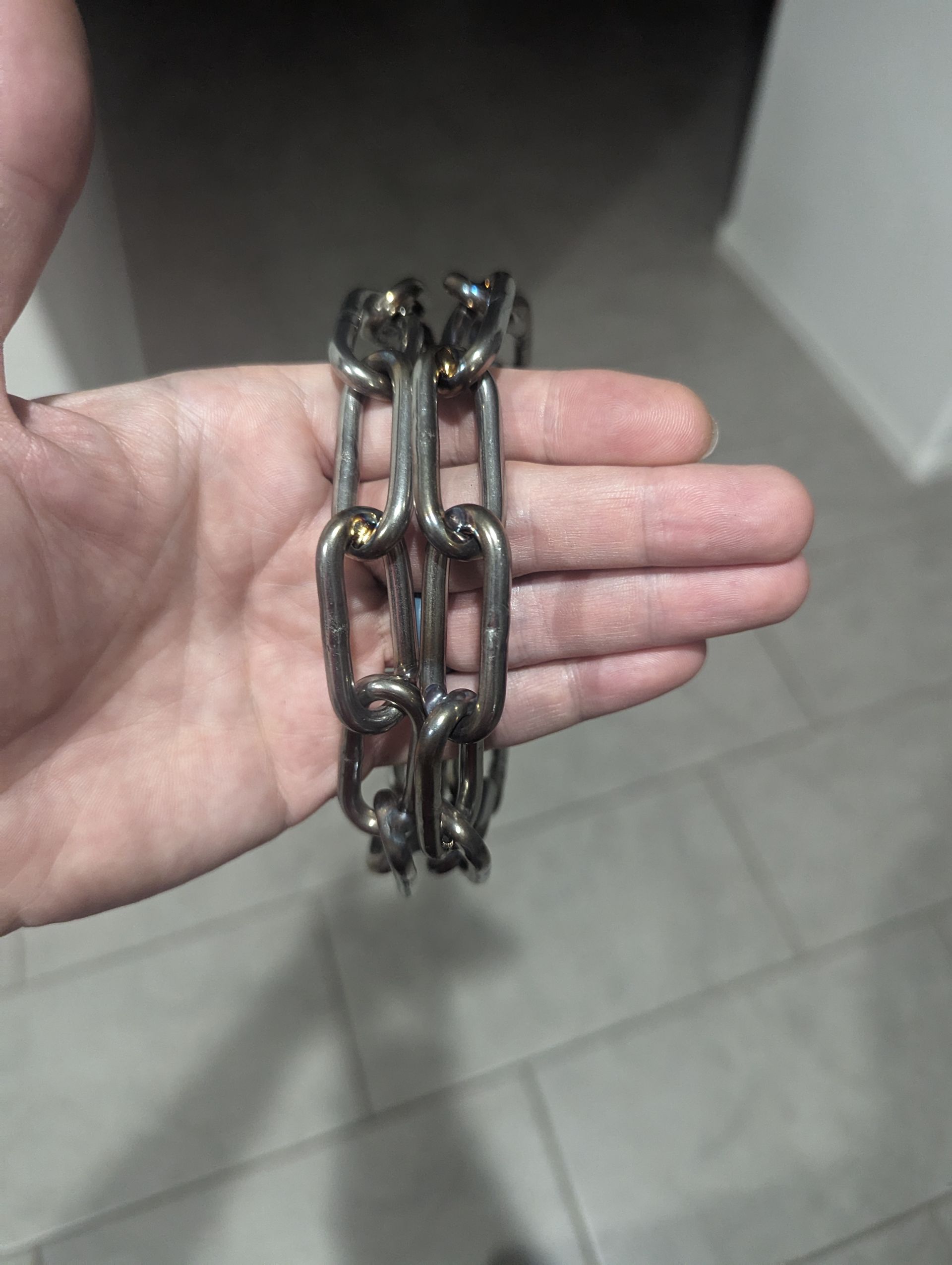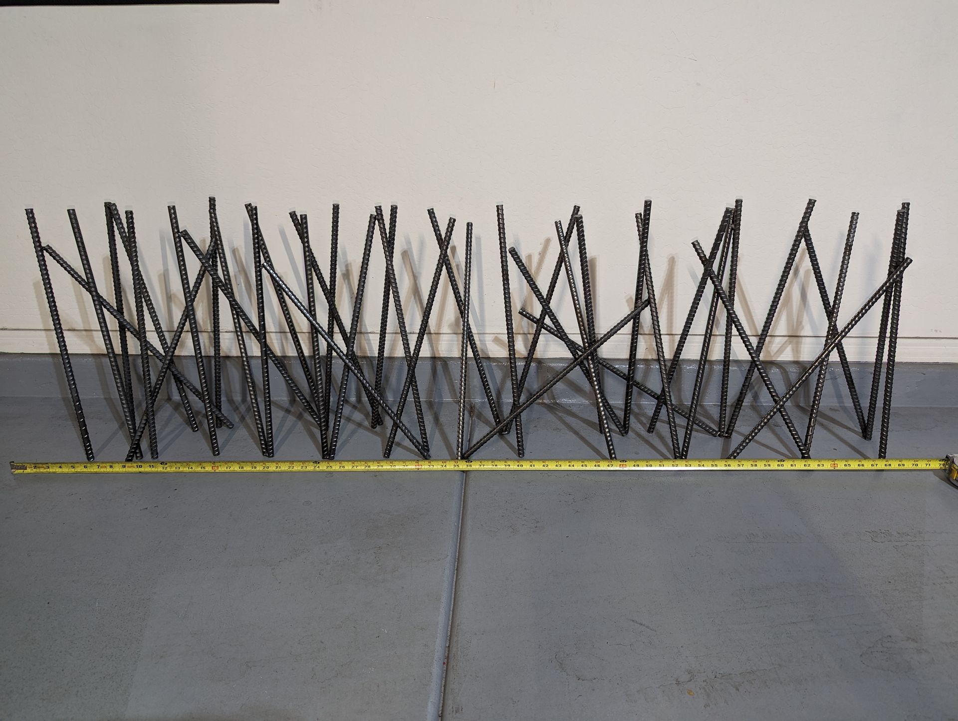 ButtonThick solid round stainless steel bars in a custom crown design for a remodel.